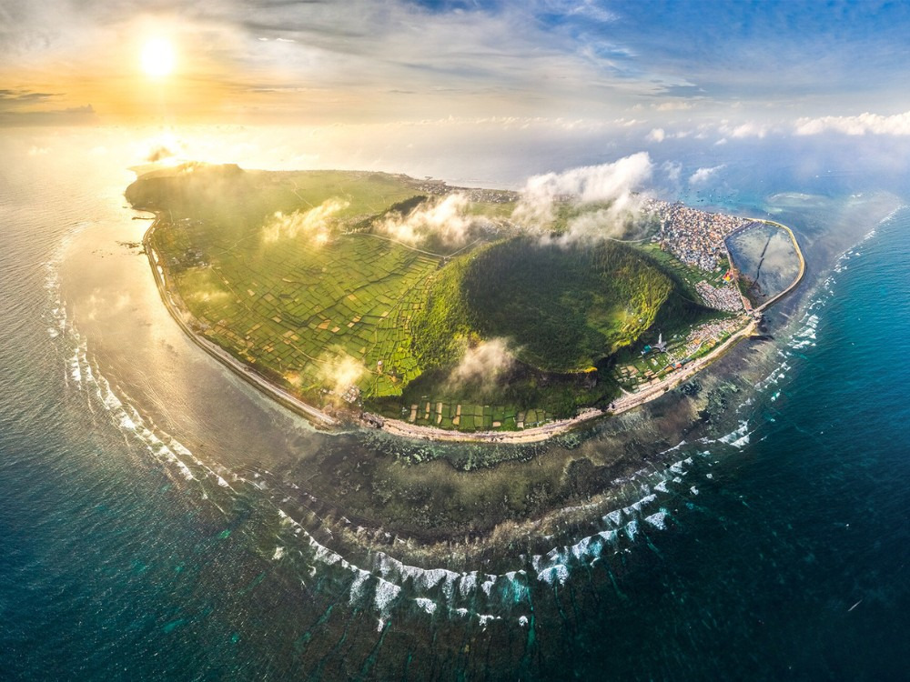 - 인생샷 포인트: 해질녘 화산 바위 위에서 내려다보는 에메랄드빛 바다